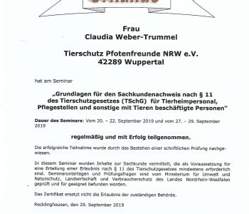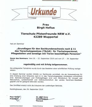 Unsere Teammitglieder Claudia Weber Trummel und Birgit Hofius haben die Sachkunde § 11.