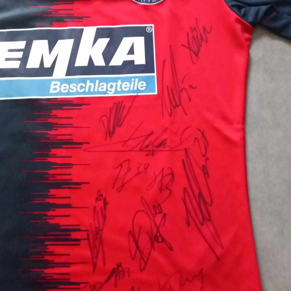Wir haben ein aktuelles Trikot vom WSV bekommen, mit allen Unterschriften der Mannschaft.