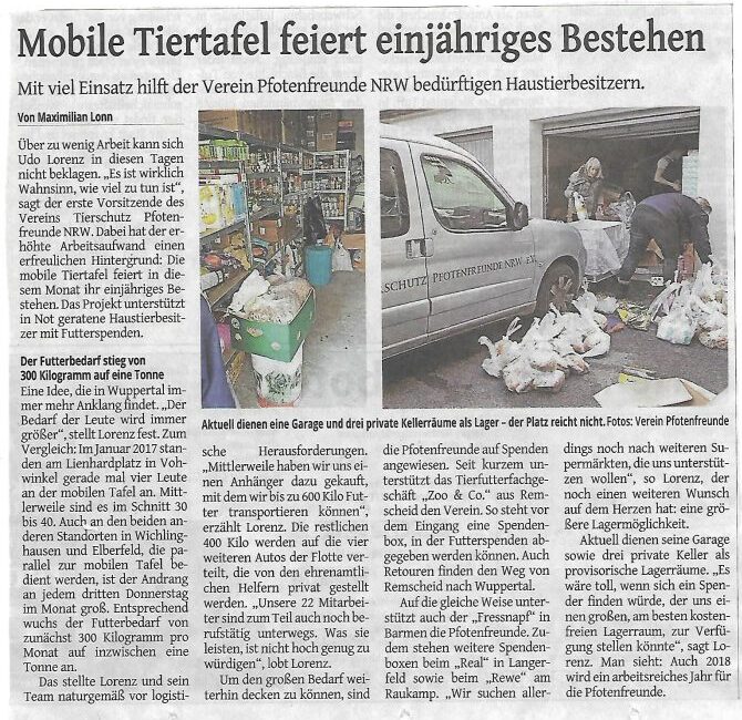 Ein Zeitungsartikel in der Westdeutschen Zeitung vom 08.01.2018